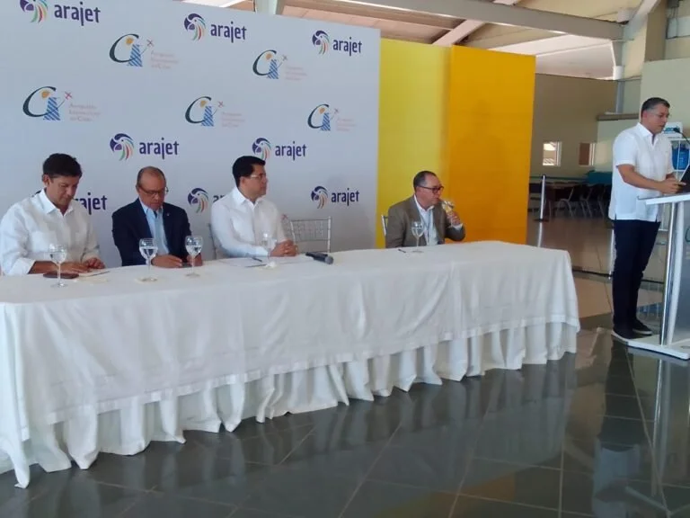 During a press conference held at Cibao International Airport, Víctor Pacheco Méndez expressed his commitment to fulfilling the promise made at the ANATO (Association of Colombian Travel Agencies) event to provide direct travel options from Santiago to Colombia. Pacheco, accompanied by Minister Collado and businessmen Manuel Estrella and José Clase, members of the Cibao International Airport’s Board of Directors, highlighted Arajet’s role as the low-cost airline of the Caribbean in establishing this new chapter of connectivity.