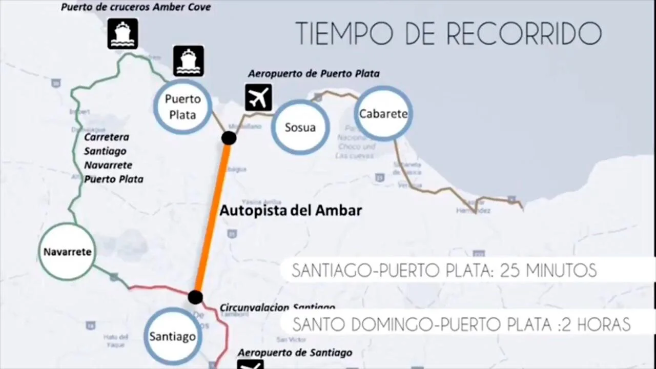 One of the recitals of the resolution specifies that the private initiative Autopista del Ámbar comprises: the design, construction, operation, and maintenance of a 32.7-kilometer-long toll road that will connect the tourist province of Puerto Plata and Santiago in less than thirty (30) minutes.